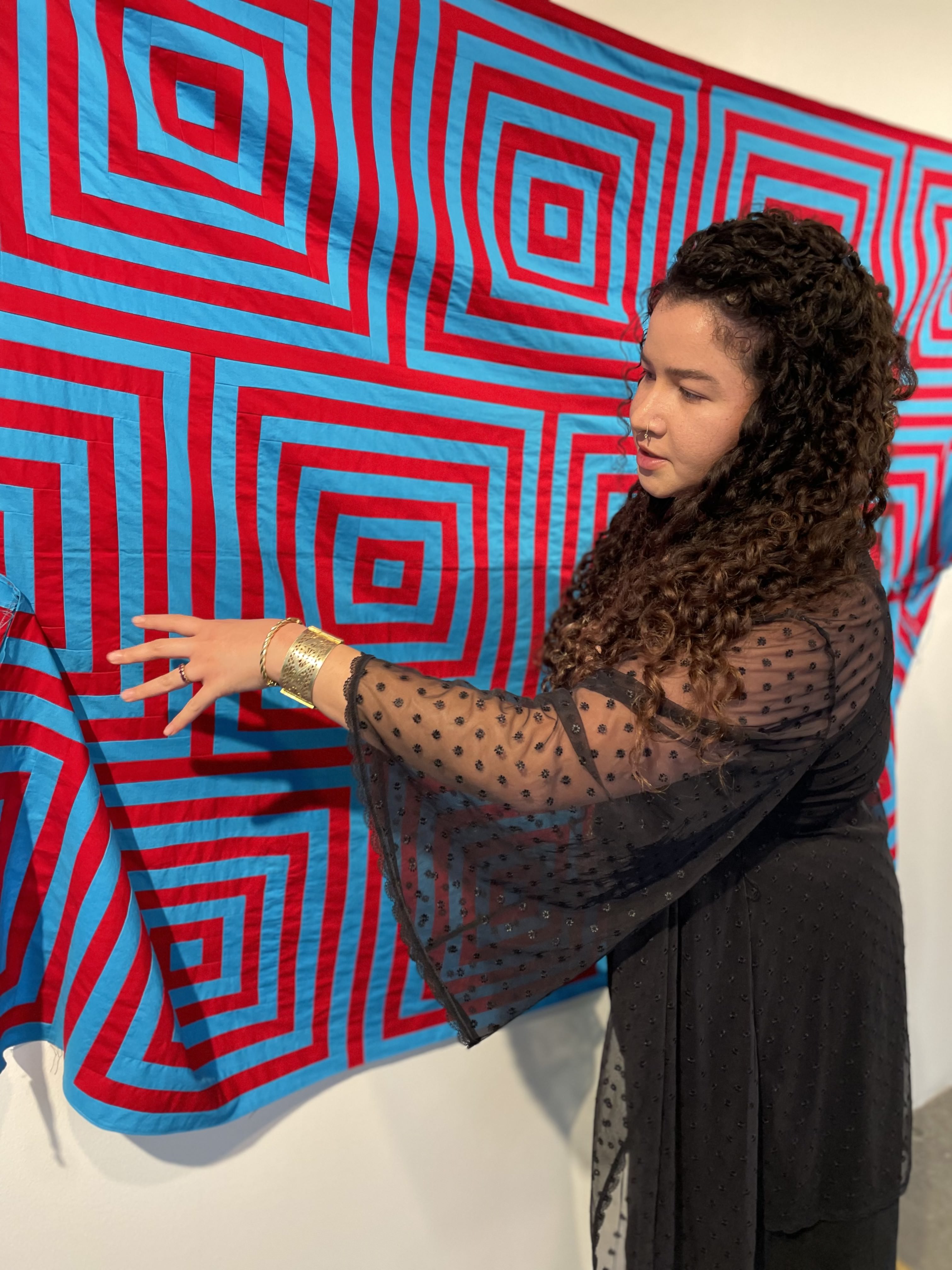 A quilted immersive installation that transports viewers to the inside of their psyche, where cognitive dissonance is visualized by geometric patterns and chromatic tension. Sit in the overwhelm that comes from reckoning with who we are versus who we want to be (individually, collectively, societally).