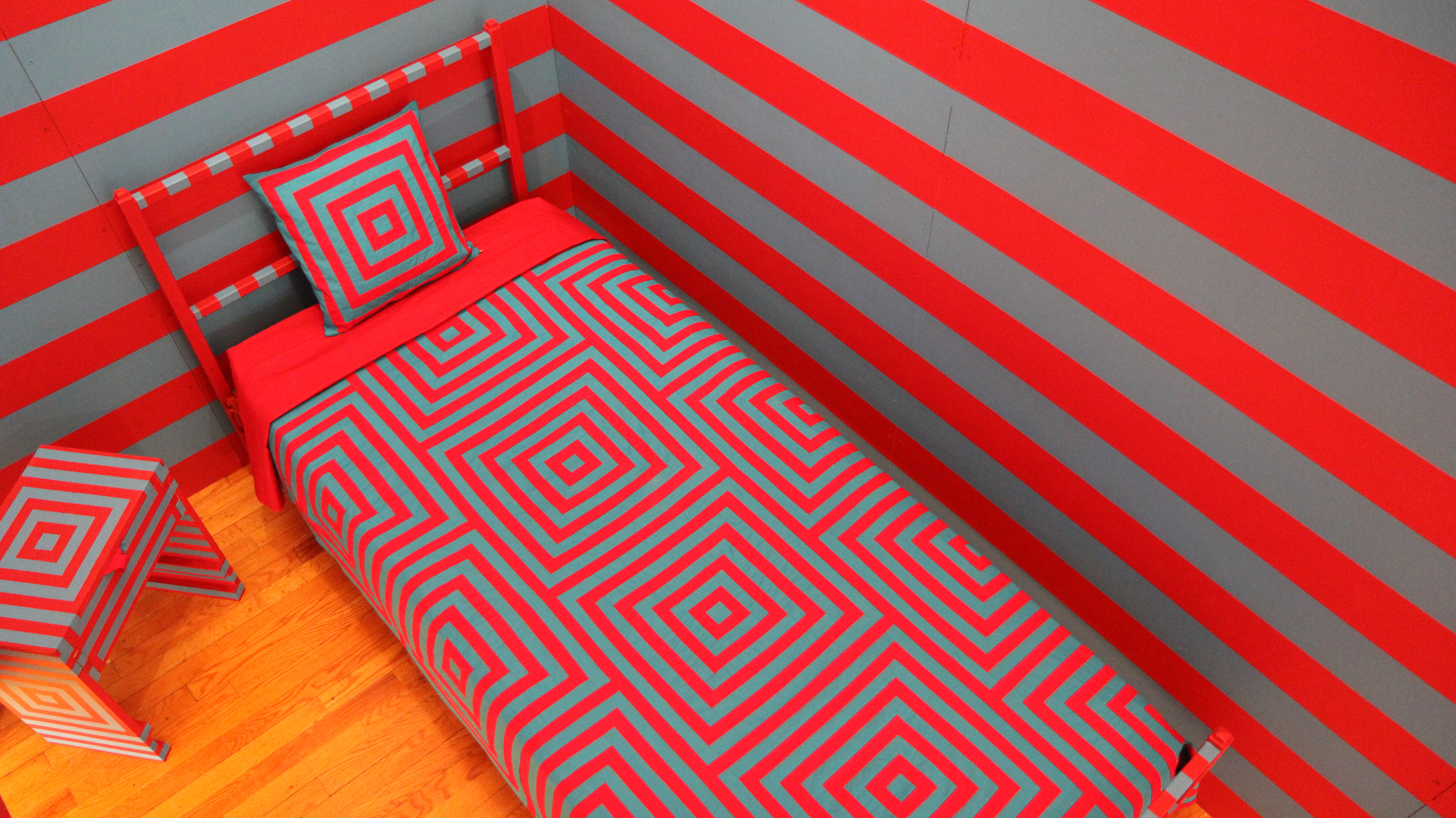 Investigating notions of authenticity, agenda, and self-suspicion, the constructed space relies on chromatic tension, physiological limits, and paradox to recreate the feeling of obsession.