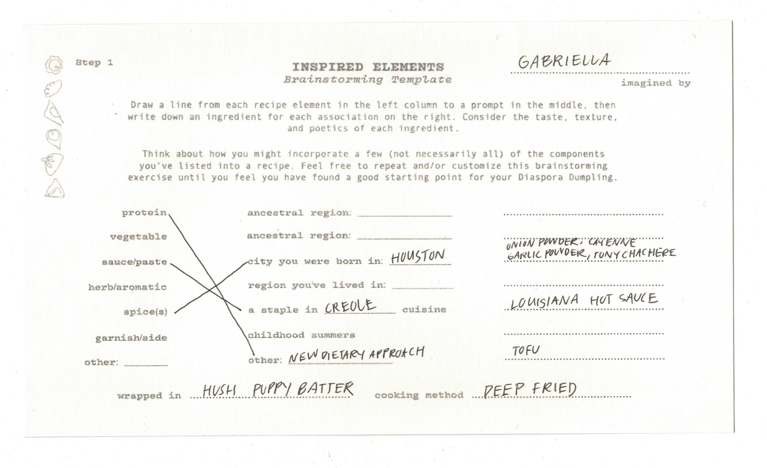 ︎︎︎ DIASPORA DUMPLING — “an inventive, cross-cultural food item made to be eaten in multiples—necessarily composed of a mixed filling that is wrapped in dough before being cooked. an edible medium for sharing who you are and where you come from.”