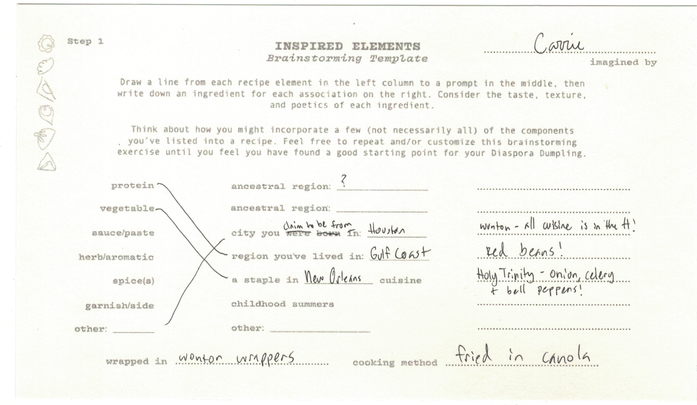 Each set contains three unique cards that guide storytelling chefs through the imaginative process of dreaming up their own diaspora dumpling.